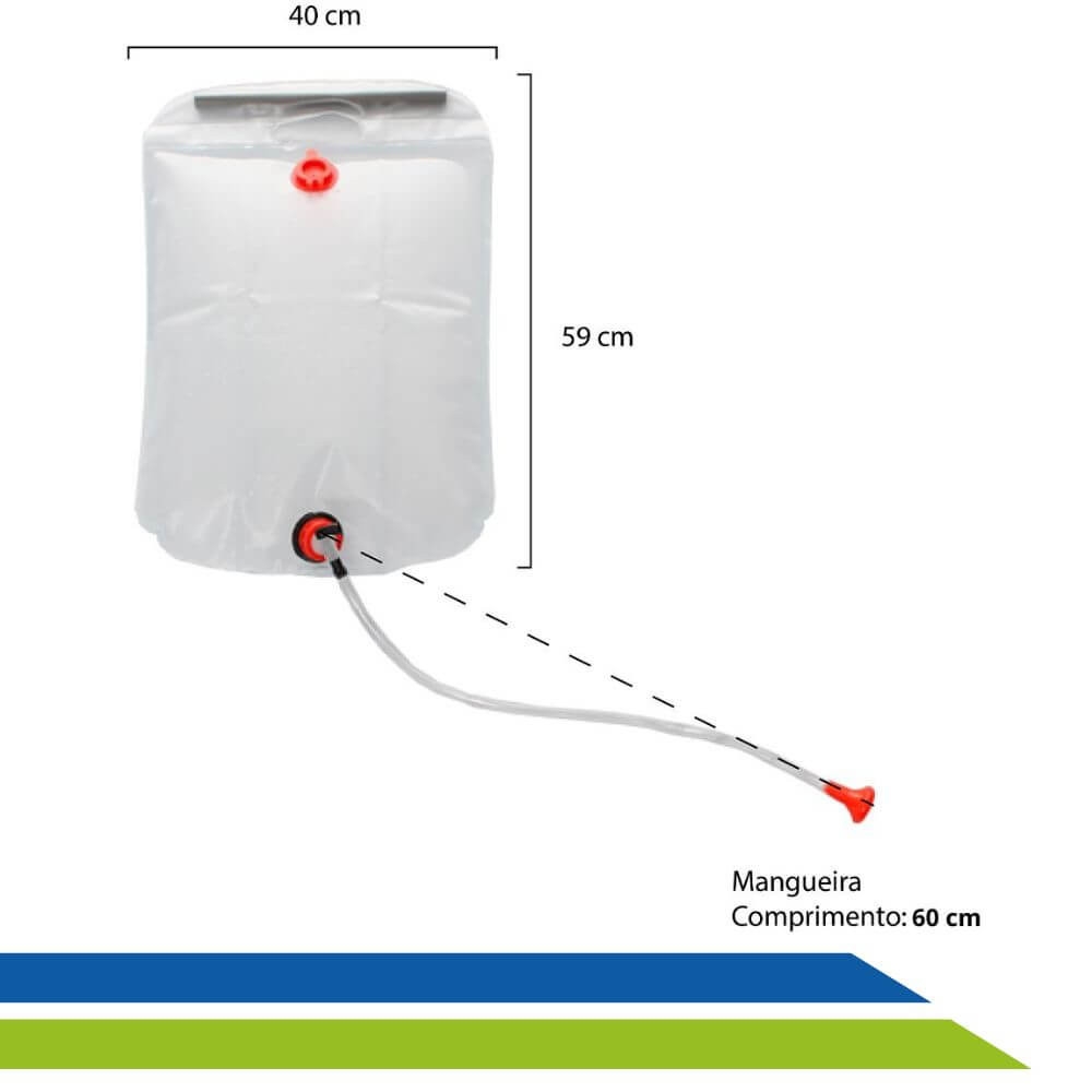 Com capacidade para 15 litros de água, seu chuveiro com torneira regulável, permite direcionar um fluxo suave de água para a cabeça do acamado.