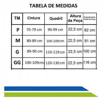 Para tirar a medida certinho, você precisa posicionar a fita métrica na altura da cintura e medir a circunferência, logo após compare a sua medida com a da tabela de medidas.
