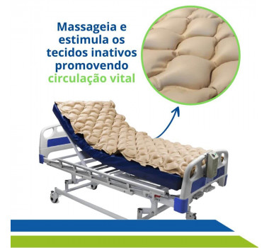 O sistema de funcionamento do colchão alterna ciclos de ar a cada cinco minutos, fazendo com que cada parte seja inflada e desinflada constantemente, assim as áreas de tecido que sofrem mais pressão são imediatamente movimentadas. Assim, o corpo do paciente recebe um estímulo que colabora para a circulação de sangue, evitando danos aos tecidos corporais inativos de paciente acamados.