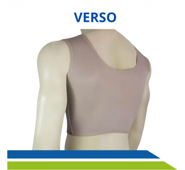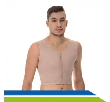O Colete de Ginecomastia Emana da New Form, com alça larga, foi desenvolvido especialmente para oferecer suporte e conforto após cirurgias. Possui abertura frontal com três fileiras de colchetes e tecido almofadado para proteger a pele, proporcionando maior conforto durante toda a recuperação.