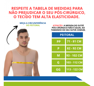 Nunca compre um colete em tamanho menor, porque ou não vai fechar ou vai ficar extremamente desconfortável podendo causar edemas e fibrose.