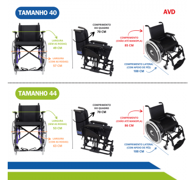 Cadeira de Rodas Ortobras em Alumínio com Pés Removíveis modelo AVD