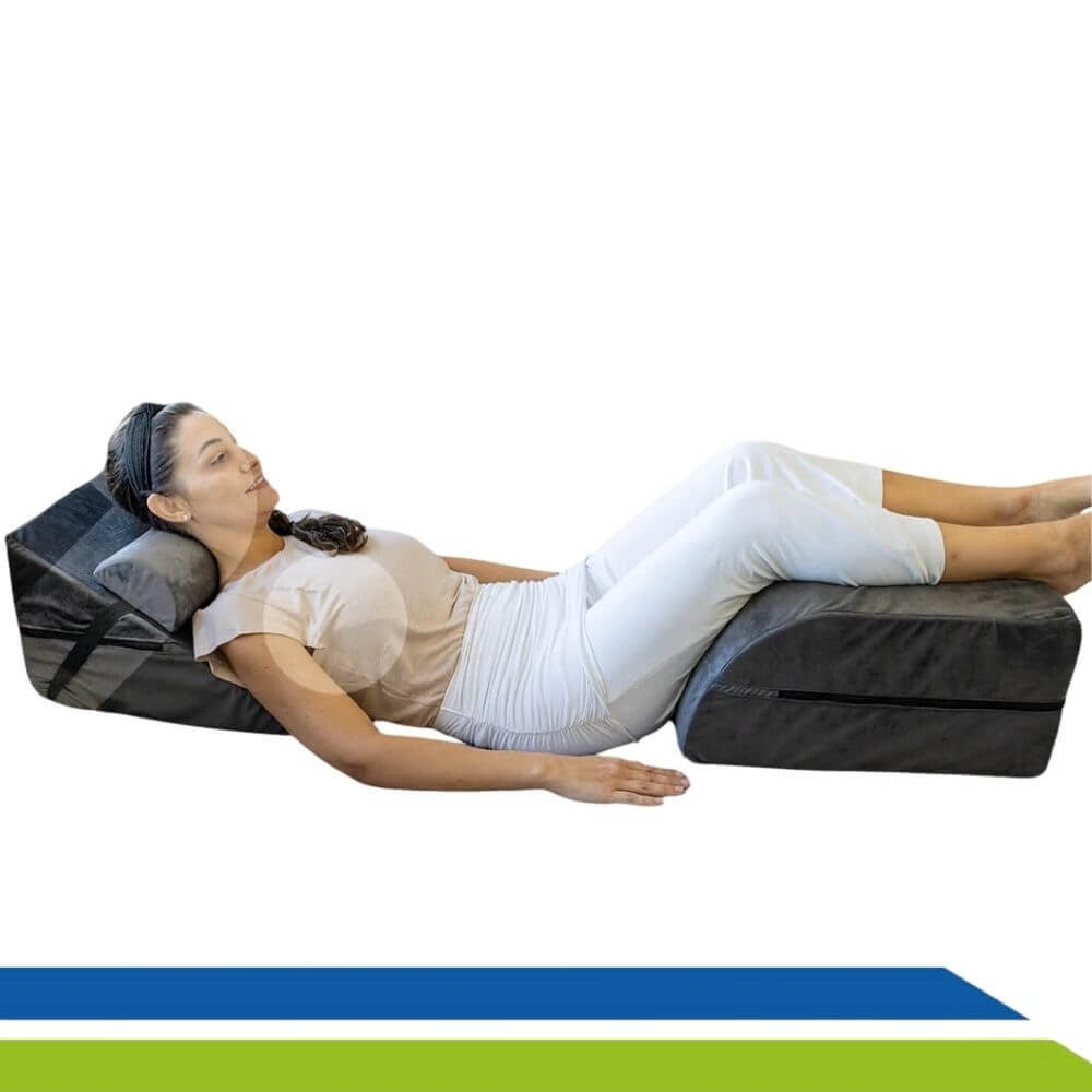 Este Kit é composto por três almofadas essenciais: Almofada de apoio triangular, a almofada em formato de meia lua para apoio cervical e a almofada de apoio para as pernas, projetada para promover um Pós-Operatório tranquilo, Confortável e Seguro.