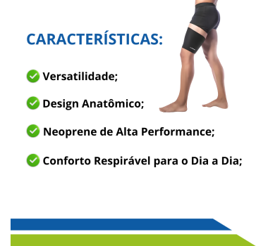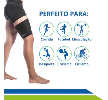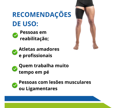 - Pessoas em processo de Reabilitação ou Recuperação: Acelera a recuperação de distensões, contusões, tendinites e dores musculares na coxa, proporcionando compressão terapêutica essencial;
