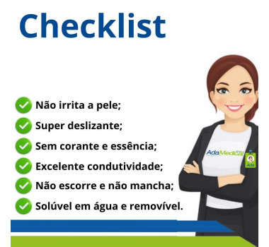 O Gel Condutor para Fisioterapia foi desenvolvido especialmente para uso como meio de contato para transmissão Ultrassônica, TENS e FES. Com propriedades hidratantes e deslizante, inodoro, incolor, não escorre, não é gorduroso, sem essência, isento de sal, álcool e é facilmente removível.
