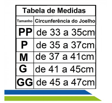 Meça a circunferência do joelho e compare as medidas com as da tabela de medidas.