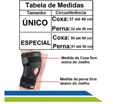 Meça a circunferência da coxa e da perna ( abaixo do joelho ), compare as medidas com as da tabela de medidas.