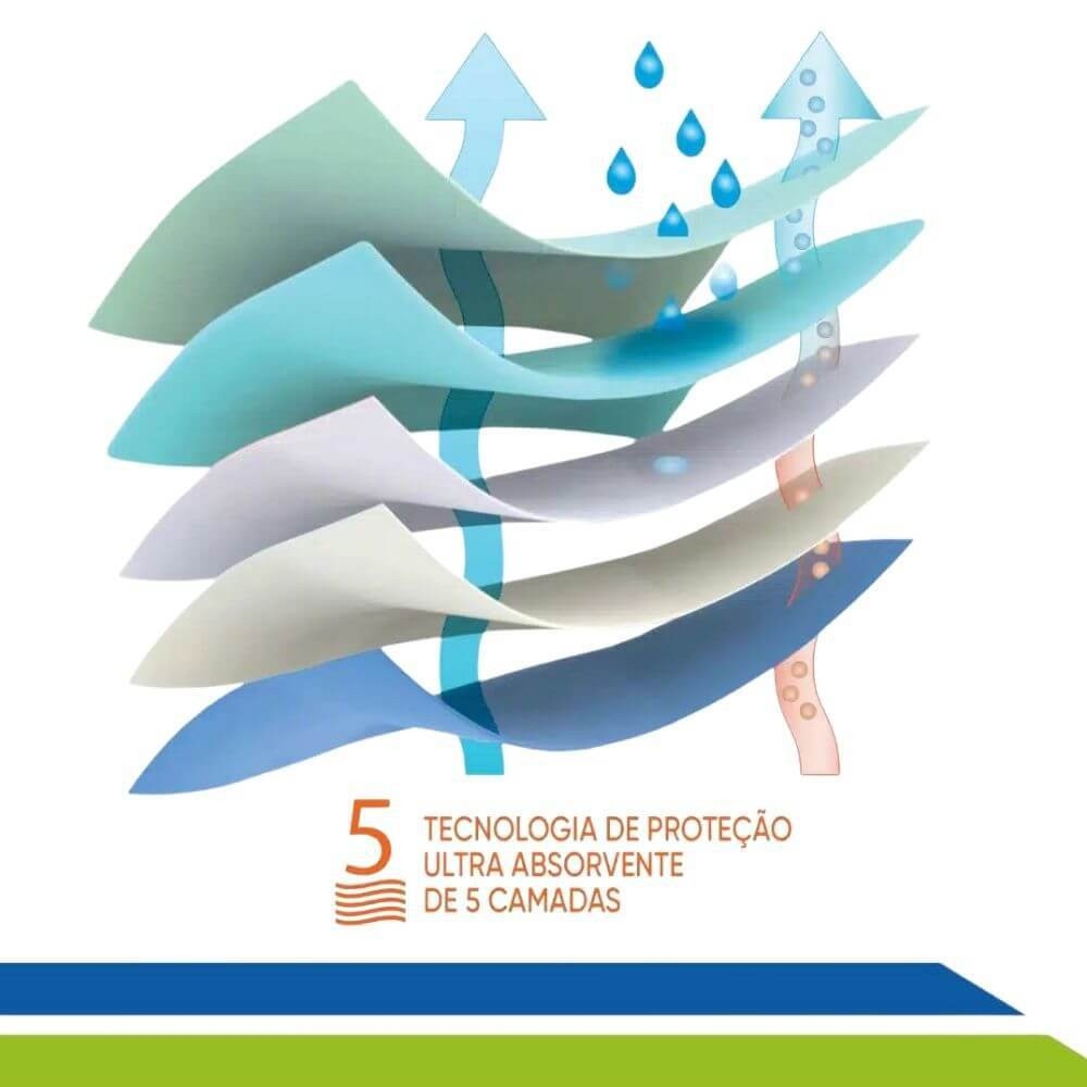 Com superfície macia e sempre seca, o Lençol foi desenvolvido com fibras especialmente construídas que canalizam os líquidos para a parte absorvente, permitindo a secura da superfície e o conforto em apenas alguns minutos.