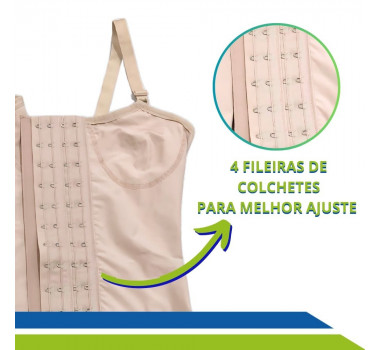 - Ajuste personalizado: A Cinta possui dupla fileira de colchetes e alça regulável permitindo que se adapte ao corpo de cada usuária.