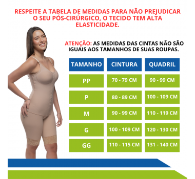 - Compressão ideal: A Cinta exerce a compressão adequada para modelar o corpo e auxiliar na sustentação dos tecidos, contribuindo para um resultado estético mais satisfatório.