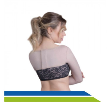 Fabricada em poliamida e elastano, a faixa de lipoaspiração e hidrolipo de braço age como mangas 3/4 compressivas para melhorar a circulação sanguínea, evitando o aumento da fibrose e do inchaço que surgem devido ao procedimento. O Bolero oferece máximo conforto para uma reabilitação saudável.