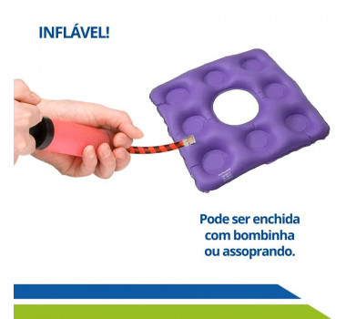 A Almofada Assento Caixa de Ovo Quadrada Inflável com Orifício Anti Escaras ajuda na prevenção e no tratamento da úlcera de pressão (escaras). Utilizado por pessoas que permanecem sentadas por longos períodos e usuário de cadeira de rodas.
