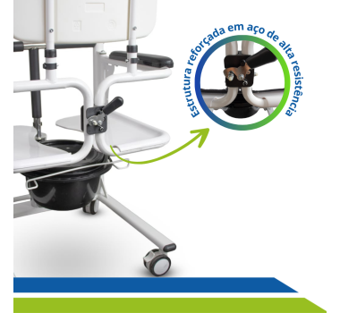IMPORTANTE: Por se tratar de um produto em aço, podem aparecer pontos de ferrugem, caso a cadeira seja usada para banho. Sugerimos que após o banho, incline a cadeira para que toda água escorra e depois seque-a com um pano seco e limpo.