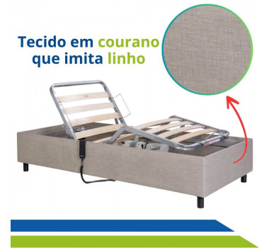 A Cama Motorizada Pilati Zeus tem lateral revestida em tecido courano que imita linho, um tecido nobre com textura que proporciona um toque suave e aconchegante.