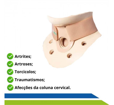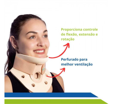 Colar Cervical Philadelphia, confeccionado na cor bege, tem como intuito restringir os movimentos da coluna cervical, proporcionando imobilização quando necessária. Deve ser utilizado sob recomendação médica, principalmente após acidentes, traumatismos, e outras complicações cervicais.