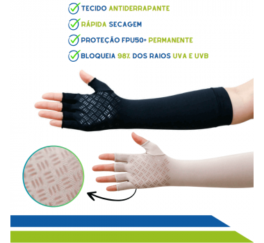A luva de proteção solar é indicada para retardar o envelhecimento das mãos, evitar manchas e o aparecimento de câncer de pele. Ela possui ação protetora com tecnologia Flambé que não sai durante as lavagens, garantindo que seu produto dure por muito tempo. Com sua maleabilidade é possível dirigir e até praticar esportes com segurança e ter a proteção necessária contra os raios UVA e UVB.