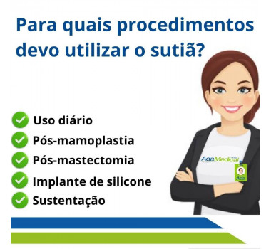 Todas as costuras dos sutiãs são externas para não marcar o corpo nem causar desconforto durante o processo pós-cirúrgico isso porque a pele fica fragilizada e esse desconforto pode atrapalhar o resultado da cirurgia.
