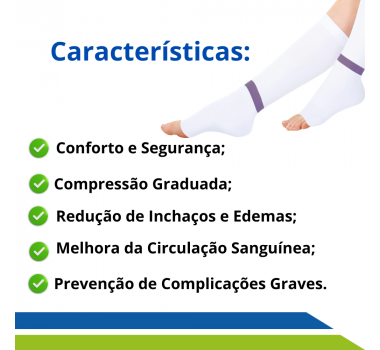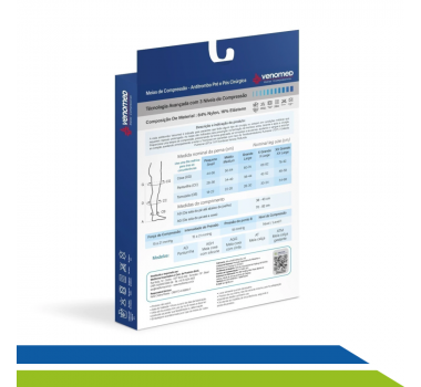 Conforme os padrões internacionais de compressão, o efeito compressivo do produto é garantido de 3 a 6 meses. A durabilidade física das meias compressivas pode variar de acordo com os cuidados de conservação e manuseio do paciente no dia a dia.