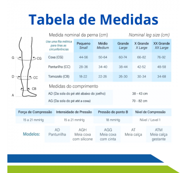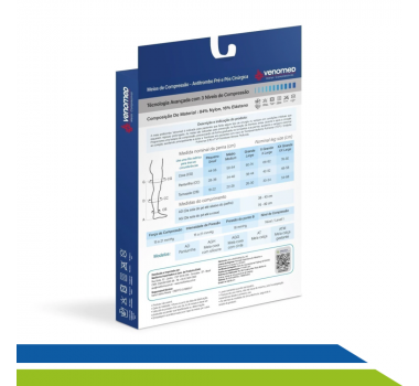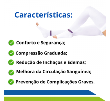 Conforme os padrões internacionais de compressão, o efeito compressivo do produto é garantido de 3 a 6 meses. A durabilidade física das meias compressivas pode variar de acordo com os cuidados de conservação e manuseio do paciente no dia a dia.