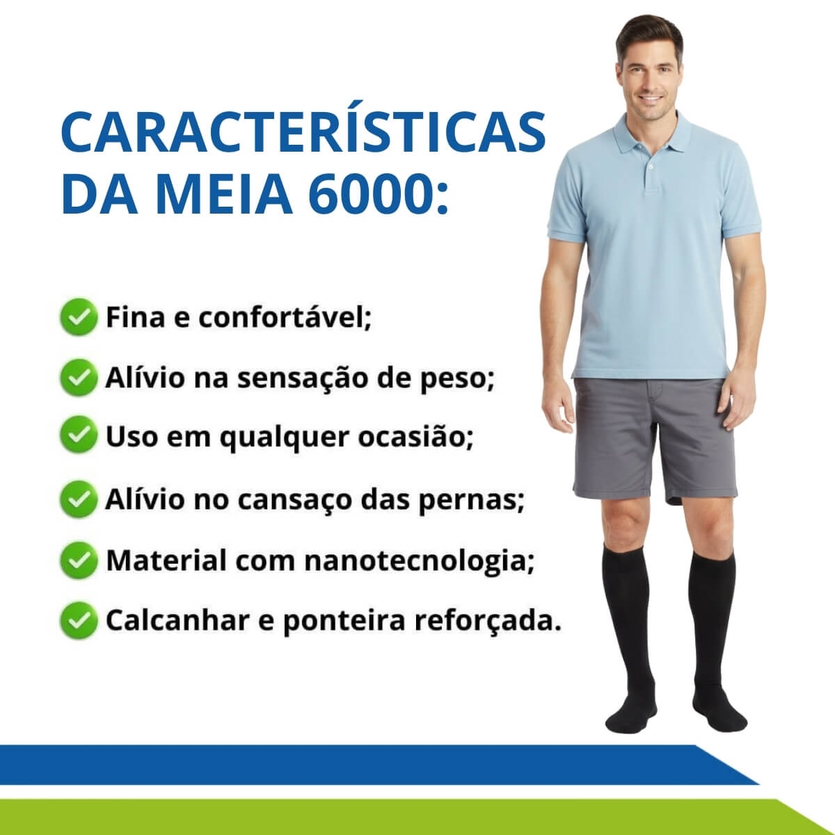 A Meia 6000 da Venosan foi desenvolvida para atender às necessidades de homens e mulheres, tendo como principal diferencial a nanotecnologia, que agrega durabilidade e conforto às meias de compressão.