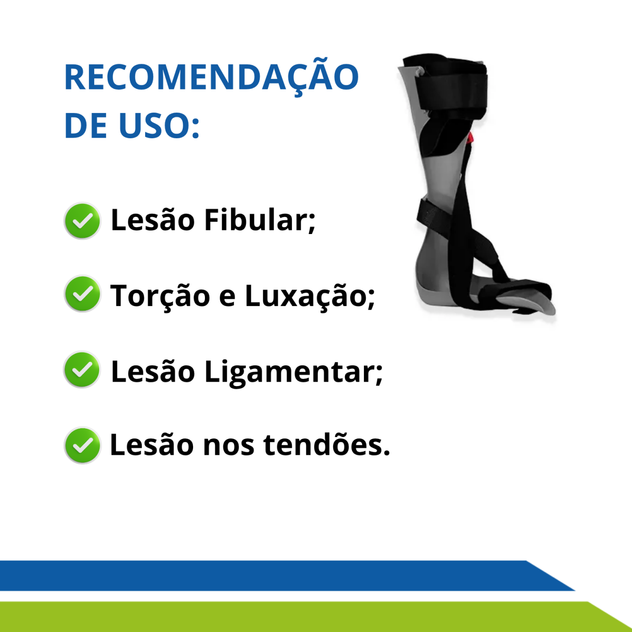 Estabiliza e protege o tornozelo em casos de lesões e pós-operatório;