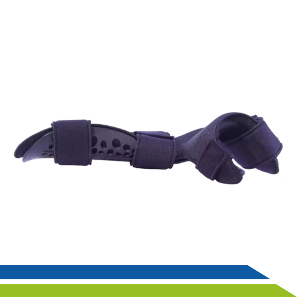 Confeccionado em copolímero, possui um formato anatômico que acomoda confortavelmente o membro, além de possuir forração interna proporcionando maciez e fixação ajustável através de fechos aderentes.