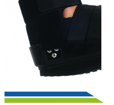 Com suporte rígido confeccionado em nylon é rocomendada para a panturrilha, tornozelo e pé, seu forro é de espuma, possui um formato anatômico para facilitar a marcha.