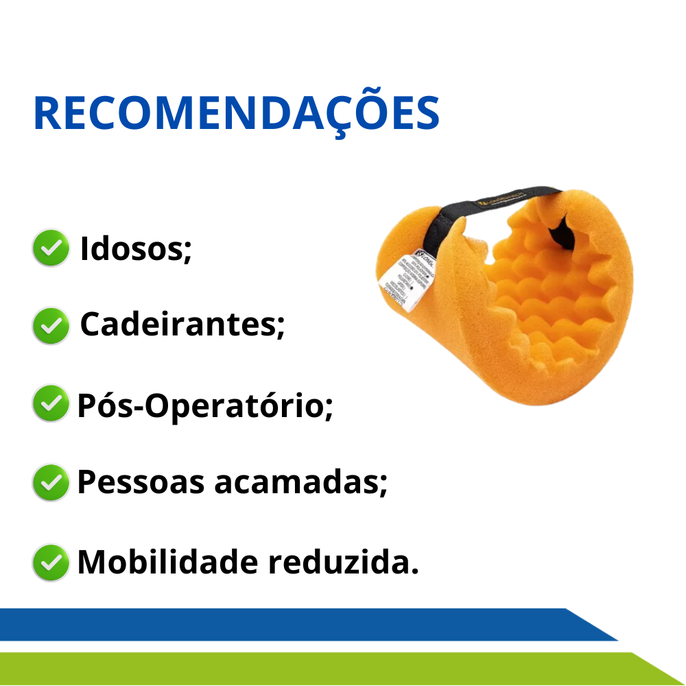 - Prevenção de Lesões: Ao distribuir a pressão de forma uniforme, o protetor auxilia a evitar o surgimento de escaras e úlceras;