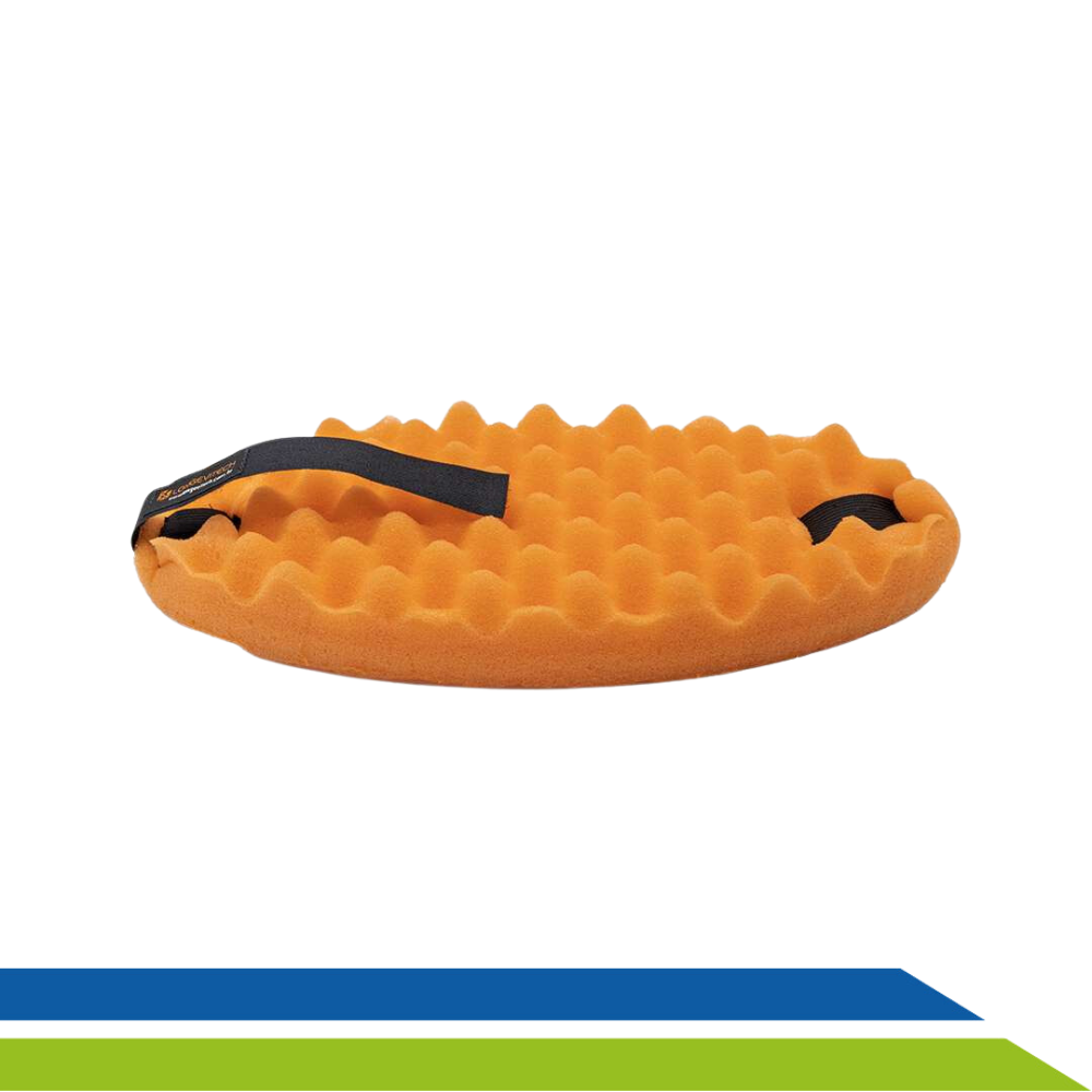 O protetor é confeccionado em espuma de poliuretano D23, um material macio e de alta densidade que distribui a pressão de forma uniforme, aliviando os pontos de atrito. Possui superfície perfilada em caixa de ovo que permite a circulação do ar, evitando o acúmulo de umidade, proporcionando maior conforto.