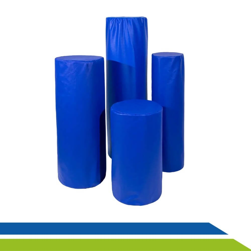 Sua superfície lisa e macia, revestida em tecido 100% poliéster com acabamento em napa azul impermeável, facilita a limpeza e higienização, garantindo praticidade e durabilidade para o dia a dia. Além disso, o rolo possui formato cilíndrico que proporciona adaptabilidade a diferentes partes do corpo.
