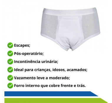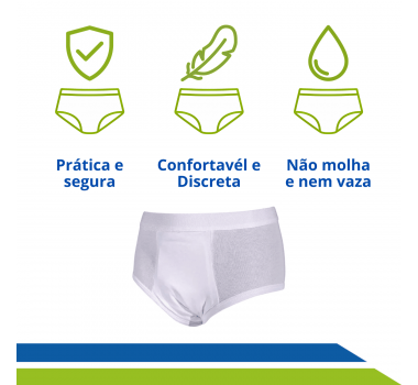 A indicação de uso desta roupa íntima é para o grau de incontinência leve a moderada auxiliando no conforto do dia a dia sem imprevistos.