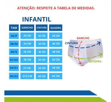 Considere as medidas da tabela e não o peso, altura ou idade da pessoa. Dessa forma, você evita devoluções ou trocas.