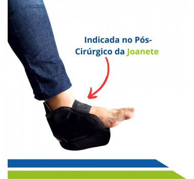 A sandália é indicada para uso na recuperação de cirurgias de joanete, protegendo a área traumatizada e dando melhor apoio ao caminhar, amenizando dores ocasionadas por este movimento.