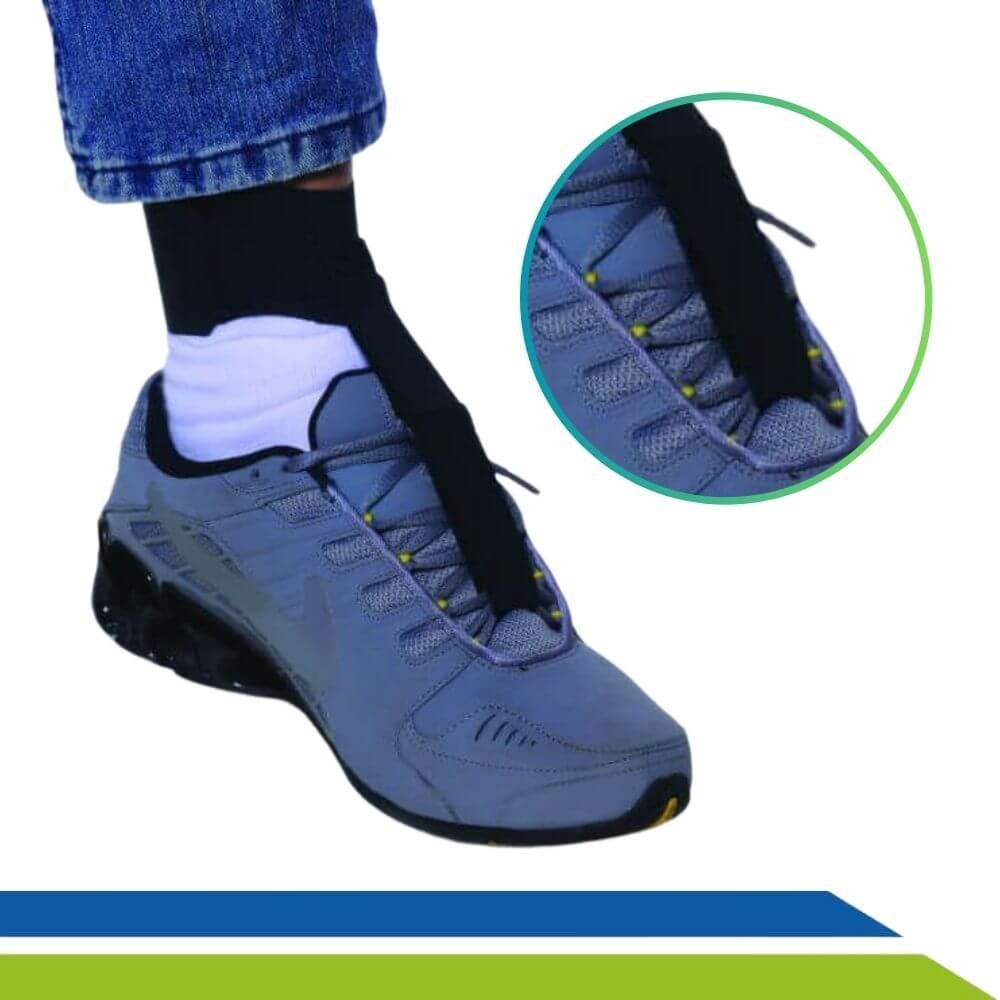 - Design: Apresenta um design simples e funcional, composto por uma tira elástica que envolve o calcanhar e outra que se conecta ao cadarço do calçado.