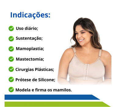 Durante processos pós cirúrgicos ele é indicado para garantir os melhores resultados já que seu uso continuo ajuda na recuperação e cicatrização, alguns médicos indicam usar continuamente o sutiã pós-cirúrgico durante, pelo menos, um mês, para resultados mais satisfatórios, pois ele ajuda a diminuir o inchaço após a cirurgia.