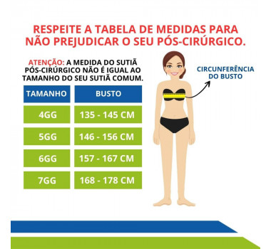 Para tirar a medida certinho, você precisa posicionar a fita métrica na altura dos seios, logo após compare as suas medidas com a tabela de medidas.