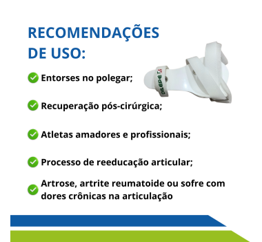 Desenvolvida com PVC anatômico e ajustável, essa órtese oferece imobilização precisa do polegar, garantindo estabilidade e alívio imediato da dor sem limitar totalmente os movimentos da mão. Seu design leve e respirável proporciona conforto durante o uso prolongado, seja no dia a dia ou durante o repouso.