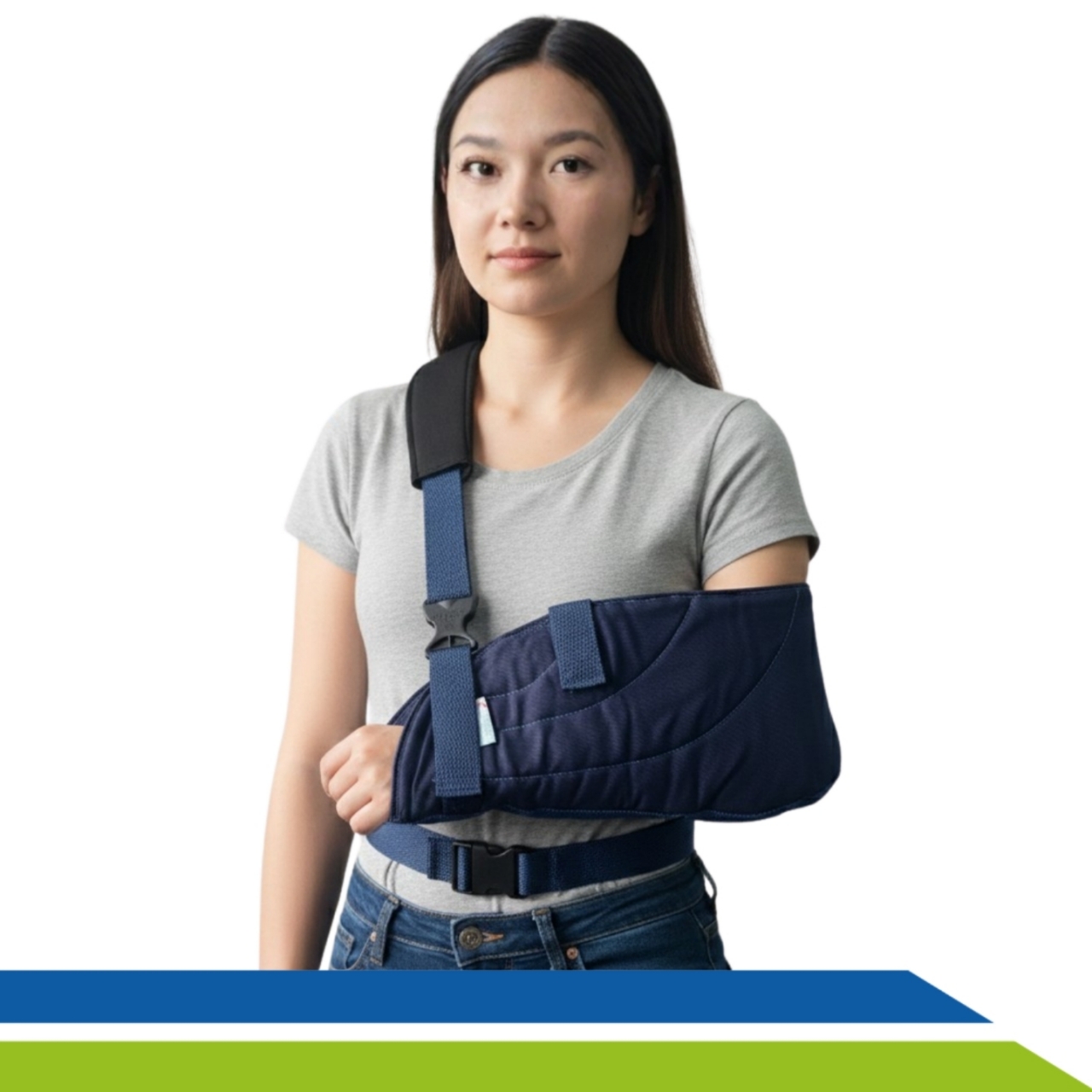 - Colocar o cotovelo dentro da tipoia e apoia-lo bem na sua parte de trás.