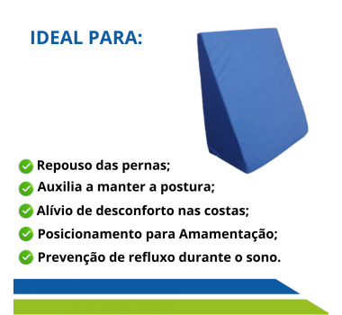 Ele auxilia na prevenção do refluxo, posicionamento pós-cirurgico, amamentação, repouso de pernas, diminui a pressão aplicada nas costas quando sentado e proporciona conforto para relaxar, assistir TV e outras atividades.