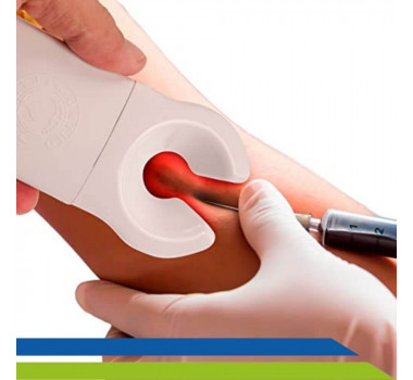 Quando submetido à superfície da pele, o Venoscópio funciona por meio da incidência da iluminação de um LED sobre o tecido subcutâneo, identificando as veias, em uma visibilidade total.